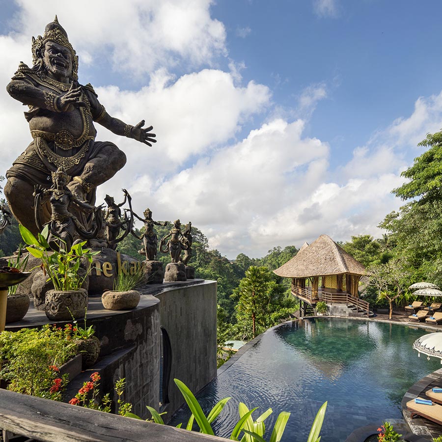 Resting on a lush Payangan hillside, The Kayon Jungle Resort is a refined sanctuary where curated Balinese luxury, art, culture, and sunlit design create serene, meaningful connections.