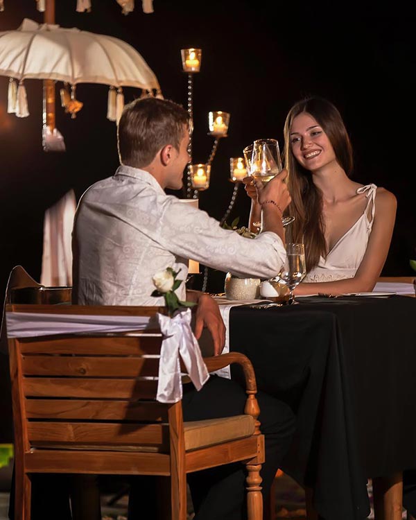 Craft an unforgettable romantic escape amidst the majestic jungle scenery and a dreamy ambiance. Immerse yourselves in a truly enchanting dinner experience on a floating stage adorned with a breathtaking display of flowers and candles, creating the perfect setting for your intimate moments. Our skilled chef will curate a delectable culinary journey, offering you a series of courses that will tantalize your taste buds and enhance the romance in the air.