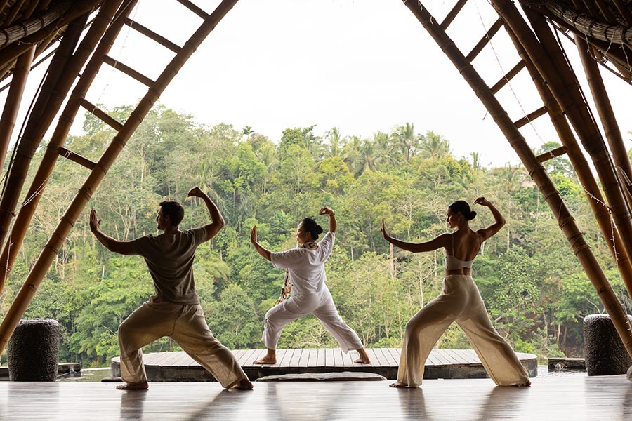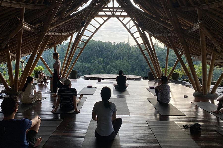 Commence your day with the serenity of morning yoga at our rooftop Yoga pavilion, where the cool morning breeze and the warm sunrise permeate the jungle leaves. Yoga, an ancient practice fostering harmony in body, mind, and spirit, sets the tone for a balanced start. The continued dedication to yoga cultivates a sense of peace, well-being, and unity with the environment, aligning human consciousness with the divine. Immerse yourself in the soothing sounds of nature—the gentle river flow, melodious birdsong—as the backdrop to your practice, fostering a union of ego-self with the infinite spirit.