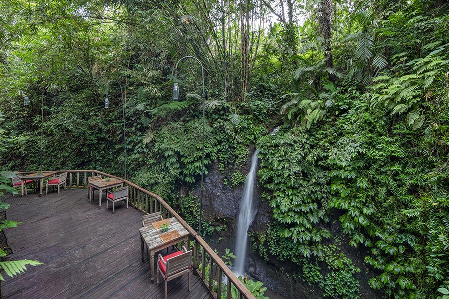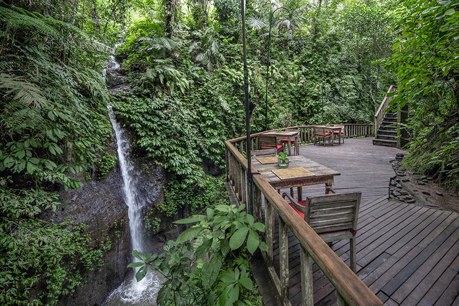 The deck at CANYON Jetty is hanging along the riverside, an ideal setting to slow down, relax having light lunch and afternoon tea surrounded by stone cliff while watch the waterfall. Enjoy the spring dripping among the moss lining the stone and the nature sound of water ripples hits the stone in the river. The Jetty is accessed with some easy step down also the best spot for morning Yoga and doing cooking class, a unique and unforgettable holiday experience