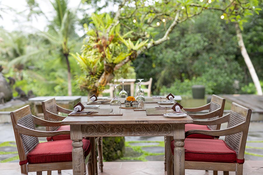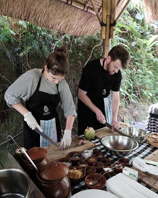 Great cuisine is not always made in obvious place. The Kayon Resort is proud to share the unique skill & secret recipe. Under guidance of our Balinese Gourmet Chef, you can learn how to prepare local delicious food. Traditional cooking takes place at River Side Canyon jetty start from 11.00am. For approximately one and half hours our Chef will share his secret dishes recipes, and followed with your memorable luncheon at open dining on the river side deck. Take home our secret recipe as our gift and impressed your family & friends with your Balinese cooking skills. Reservation is required at least one day in advance and our chef will please to meet you for further arrangement. Price at IDR 800K++ subject to 21% service and tax per person.