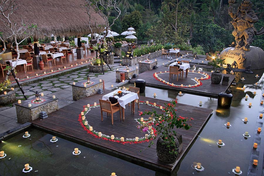 A floating Puspaka Chapel at the Kayon resort is set incorporate with Yoga pavilion has a truly Ubud magnificent natural setting of rice field, Jungles and river sounds. Designed with the antique Balinese royal carriage and decorated with local flowers will take you to the spirit of Shinta Love devotion when say ‘Yes I Do’ witnessed with your lovely family and best friends.