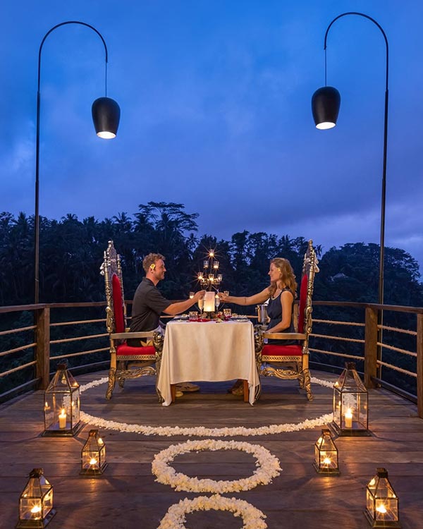 Design unforgettable romantic escape in the majestic of Jungle view and romantic ambience. Indulge your lovely partner in a romantic experience on a floating stage with flower and candles decoration while enjoying some courses tasty cuisine by our chef. Your honeymoon moment would be remarkable along with body treatment facing to beauty nature view at Serayu SPA.